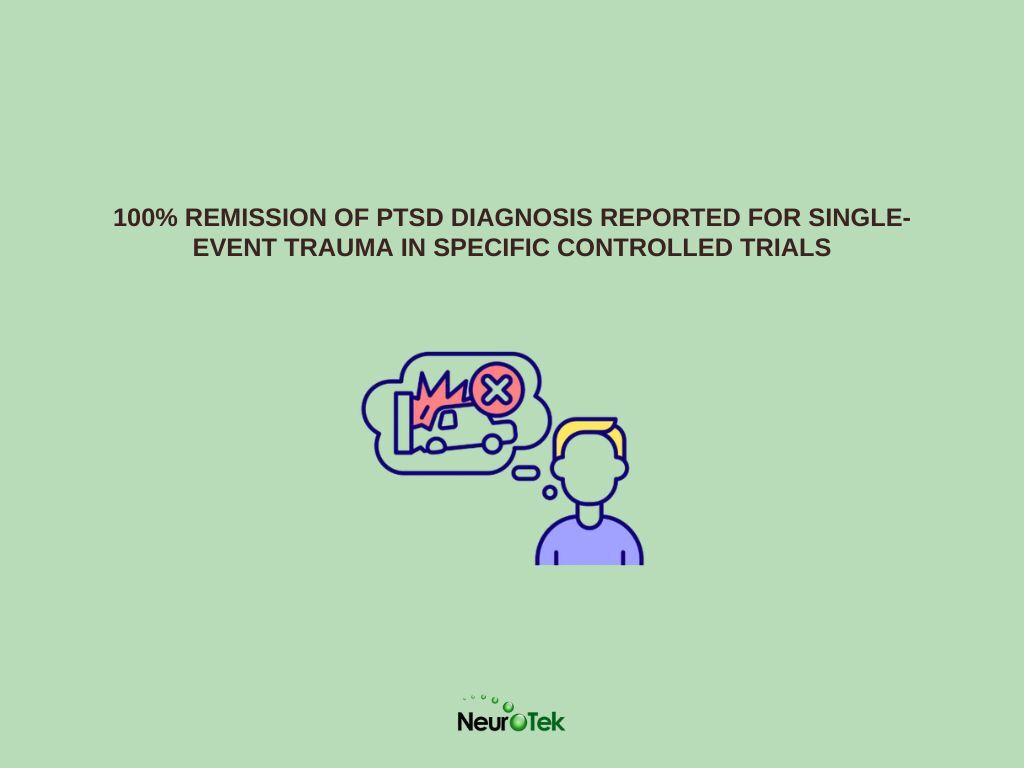 - 100% remission of PTSD diagnosis reported for single-event trauma in specific controlled trials