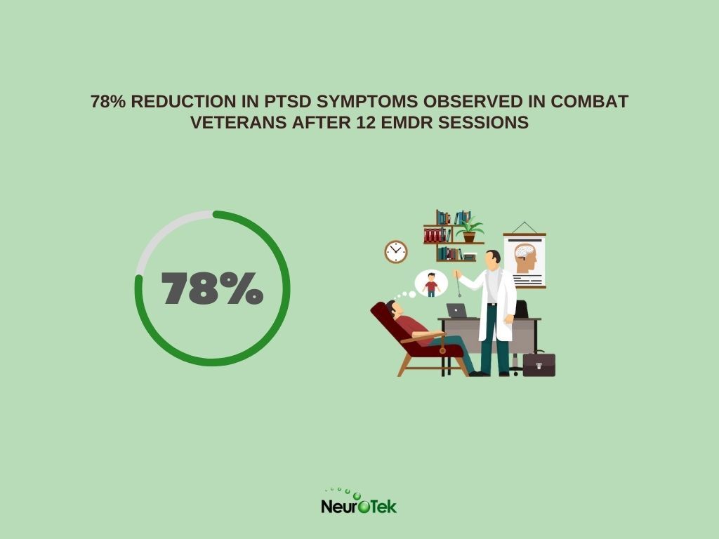 - 78% reduction in PTSD symptoms observed in combat veterans after 12 EMDR sessions