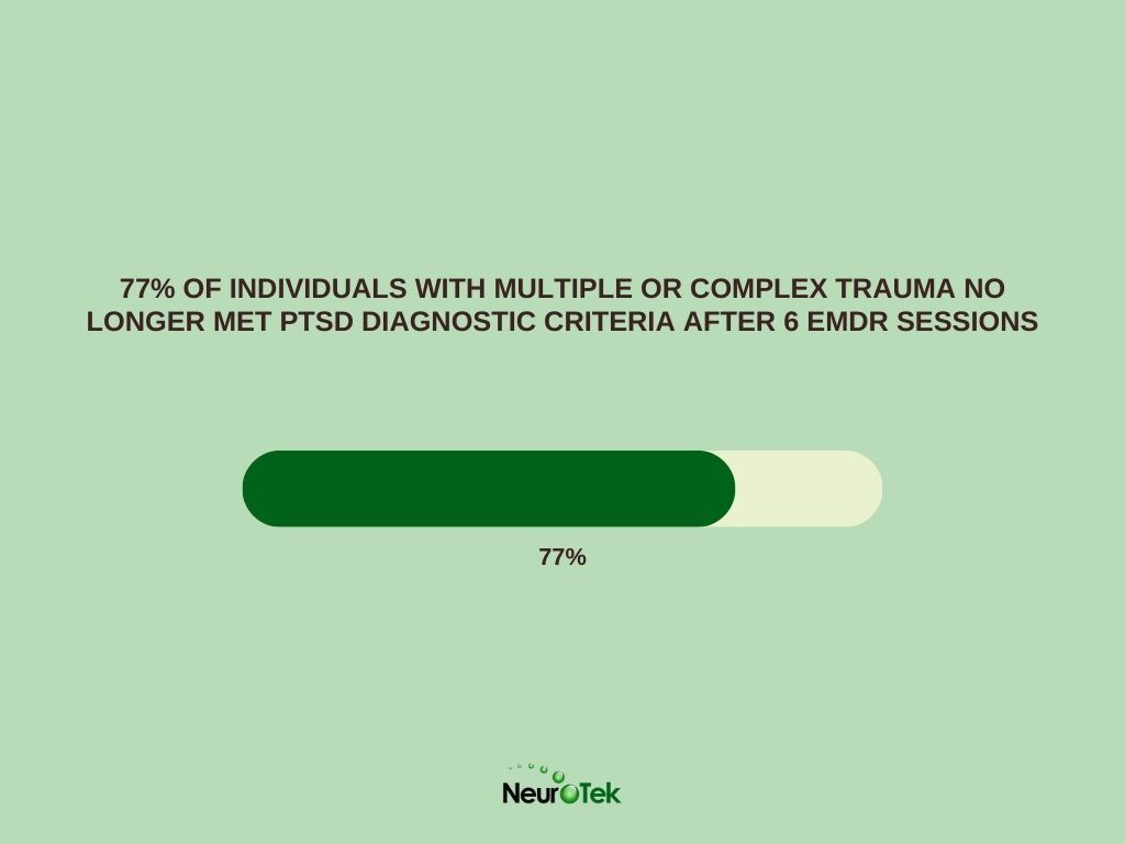 - 77% of individuals with multiple or complex trauma no longer met PTSD diagnostic criteria after 6 EMDR sessions
