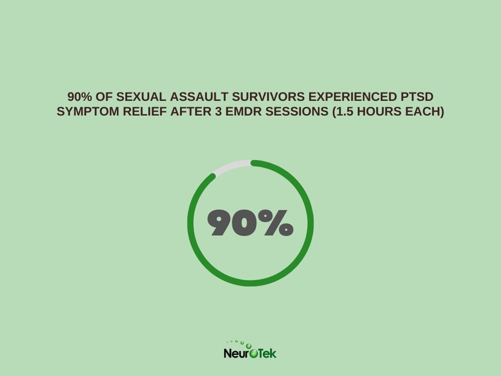 - 90% of sexual assault survivors experienced PTSD symptom relief after 3 EMDR sessions (1.5 hours each)